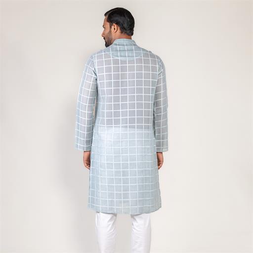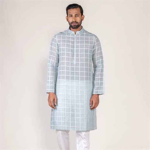 • Self check design panjabi • Metal button closure • Round cut band collar