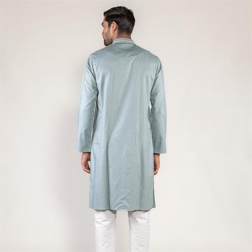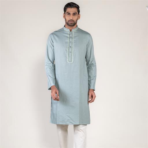 • Slim fit/Regular Fit • Bain collar • Decoratiove Embroidered stich design around placket and collar • Singal placket metal button • 100% cotton body fabric •