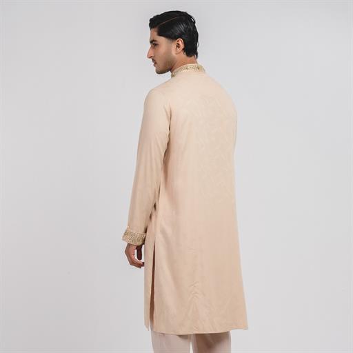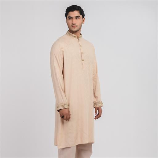 • Self texture fabric • Hand Karchupi work collar, button & cuff • Hidden button placket