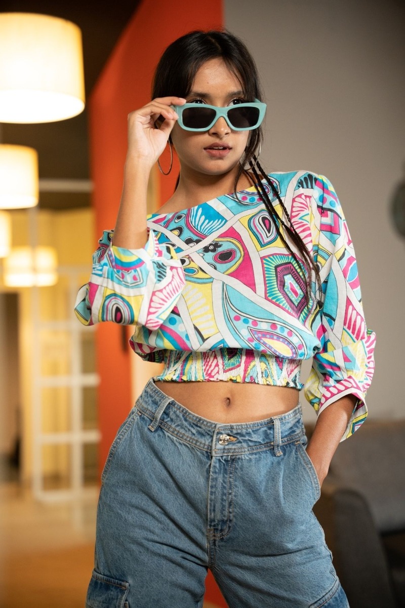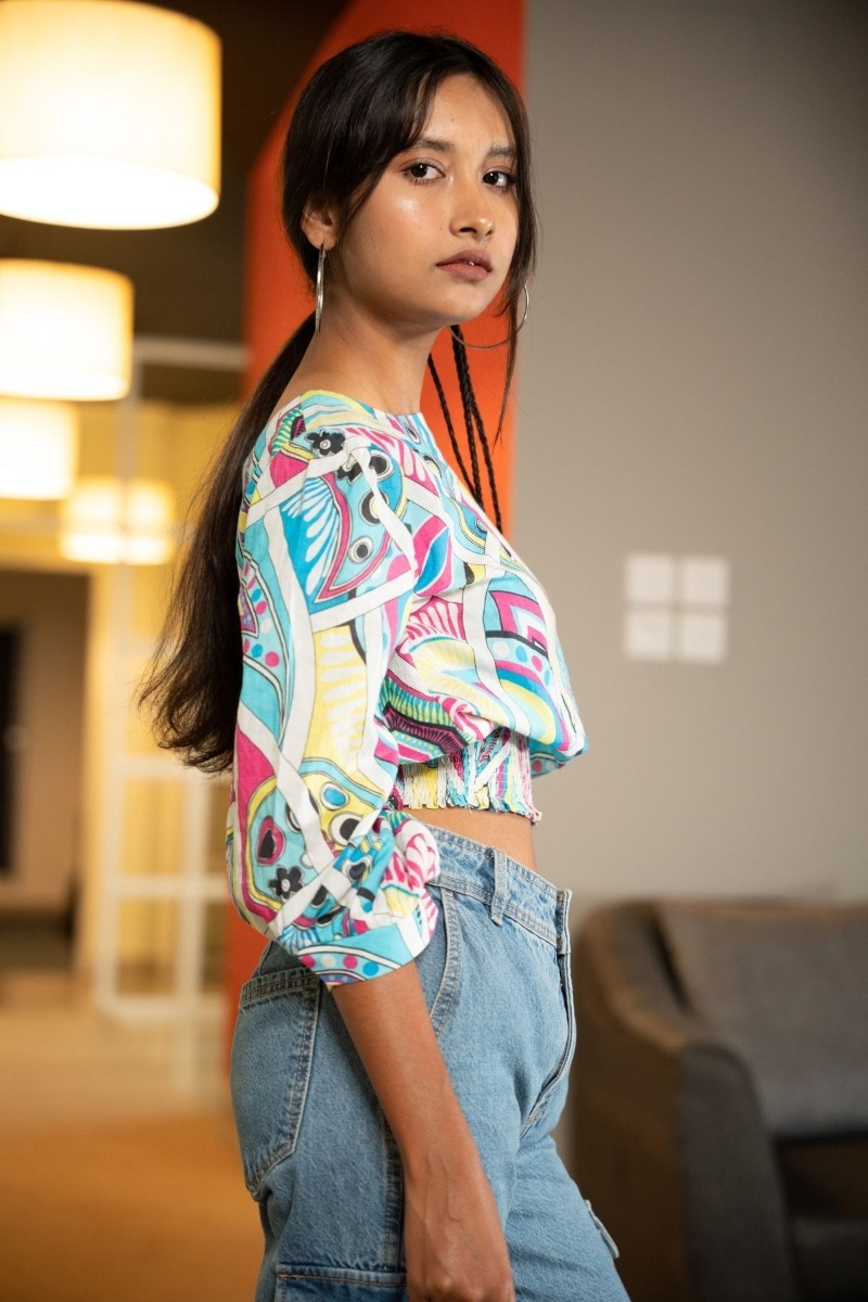 Introducing our "Groovy Galore Crop Top" – a burst of vibrant energy and playful charm designed for the adventurous teen fashionista. This colorful printed crop top is a celebration of creativity and individuality, perfect for making a bold statement wherever you go.