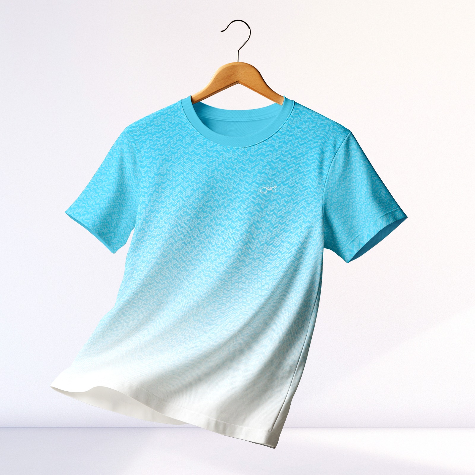 Fabric: Interlock, 100% Polyester, Fabric Color: Sky Blue & white Contrast Sleeve Style: Half