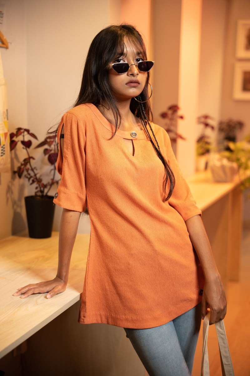 Introducing our "Pumpkin Spice" – a vibrant burst of energy and style that's perfect for the trendsetting teen. Crafted in a luscious shade of orange reminiscent of a summer sunset, this top is designed to turn heads and ignite your fashion sense.