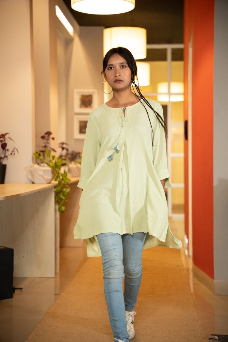 Introducing our "Sage Full Sleeve Top" – a refreshing addition to your wardrobe that exudes elegance and charm. This light green top captures the essence of springtime with its soothing hue and versatile design.